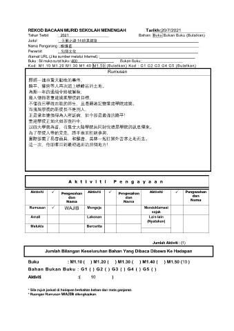 REKOD BACAAN MURID SEKOLAH MENENGAH Tarikh:20/7/2021
