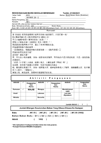 REKOD BACAAN MURID SEKOLAH MENENGAH Tarikh: 21/08/2021
