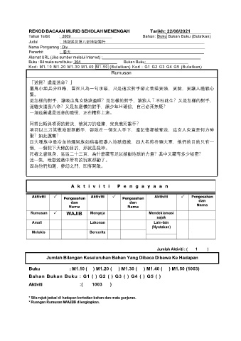 REKOD BACAAN MURID SEKOLAH MENENGAH Tarikh: 22/08/2021
