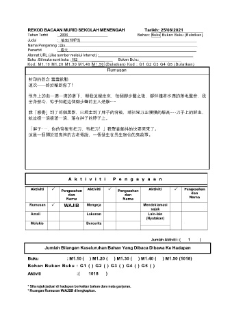 REKOD BACAAN MURID SEKOLAH MENENGAH Tarikh: 25/08/2021
