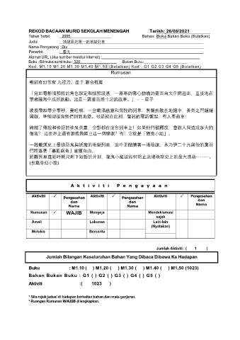 REKOD BACAAN MURID SEKOLAH MENENGAH Tarikh: 26/08/2021