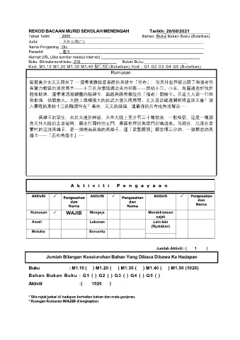 REKOD BACAAN MURID SEKOLAH MENENGAH Tarikh: 26/08/2021