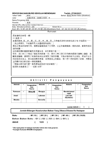 REKOD BACAAN MURID SEKOLAH MENENGAH Tarikh: 27/08/2021