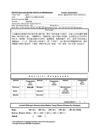 REKOD BACAAN MURID SEKOLAH MENENGAH Tarikh: 02/09/2021