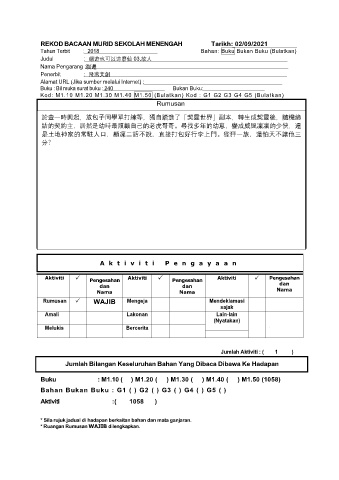 REKOD BACAAN MURID SEKOLAH MENENGAH Tarikh: 02/09/2021