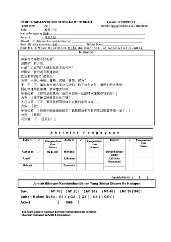 REKOD BACAAN MURID SEKOLAH MENENGAH Tarikh: 03/09/2021