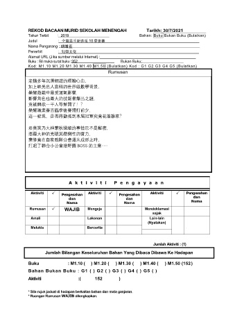 REKOD BACAAN MURID SEKOLAH MENENGAH Tarikh: 30/7/2021
