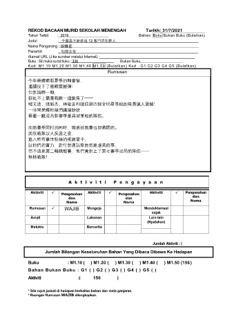REKOD BACAAN MURID SEKOLAH MENENGAH Tarikh: 31/7/2021