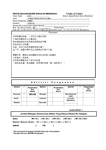 REKOD BACAAN MURID SEKOLAH MENENGAH Tarikh: 31/7/2021