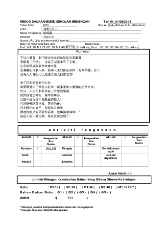 REKOD BACAAN MURID SEKOLAH MENENGAH Tarikh: 01/08/2021