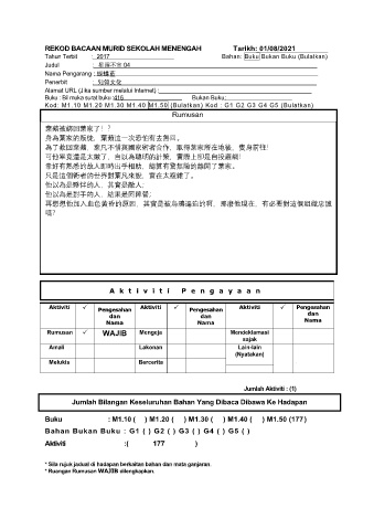 REKOD BACAAN MURID SEKOLAH MENENGAH Tarikh: 01/08/2021
