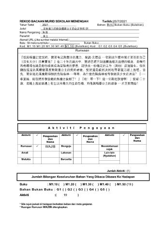 REKOD BACAAN MURID SEKOLAH MENENGAH Tarikh:25/7/2021
