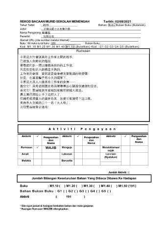 REKOD BACAAN MURID SEKOLAH MENENGAH Tarikh: 02/08/2021