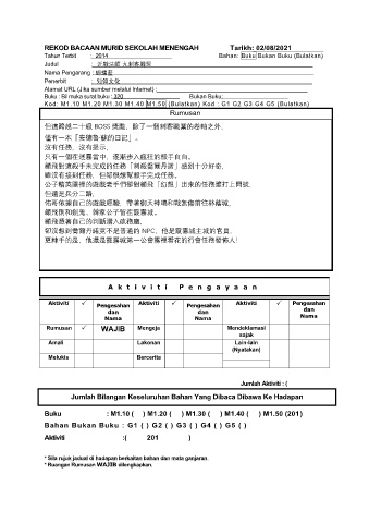 REKOD BACAAN MURID SEKOLAH MENENGAH Tarikh: 02/08/2021
