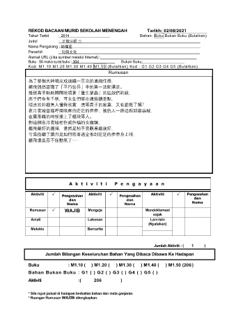 REKOD BACAAN MURID SEKOLAH MENENGAH Tarikh: 02/08/2021