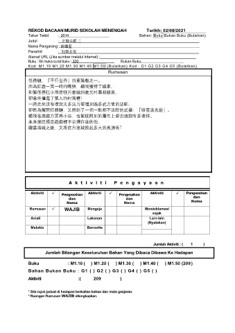 REKOD BACAAN MURID SEKOLAH MENENGAH Tarikh: 02/08/2021