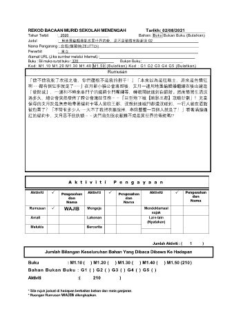 REKOD BACAAN MURID SEKOLAH MENENGAH Tarikh: 02/08/2021