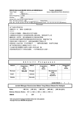 REKOD BACAAN MURID SEKOLAH MENENGAH Tarikh: 02/08/2021