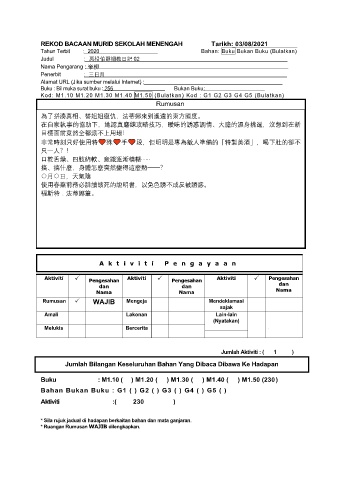 REKOD BACAAN MURID SEKOLAH MENENGAH Tarikh: 03/08/2021