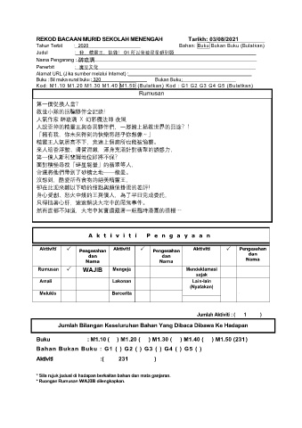 REKOD BACAAN MURID SEKOLAH MENENGAH Tarikh: 03/08/2021