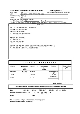 REKOD BACAAN MURID SEKOLAH MENENGAH Tarikh: 04/08/2021
