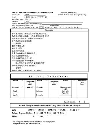 REKOD BACAAN MURID SEKOLAH MENENGAH Tarikh: 04/08/2021