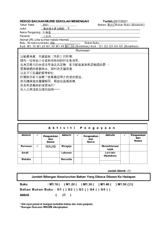 REKOD BACAAN MURID SEKOLAH MENENGAH Tarikh:25/7/2021