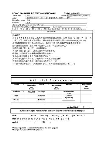REKOD BACAAN MURID SEKOLAH MENENGAH Tarikh: 04/08/2021