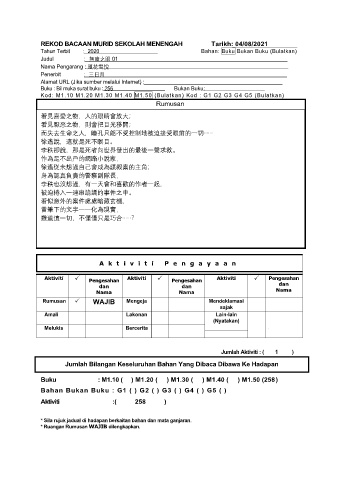 REKOD BACAAN MURID SEKOLAH MENENGAH Tarikh: 04/08/2021