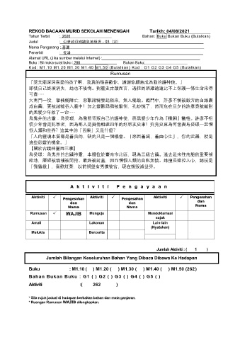 REKOD BACAAN MURID SEKOLAH MENENGAH Tarikh: 04/08/2021