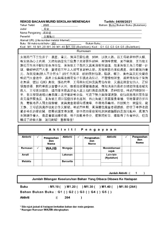 REKOD BACAAN MURID SEKOLAH MENENGAH Tarikh: 04/08/2021