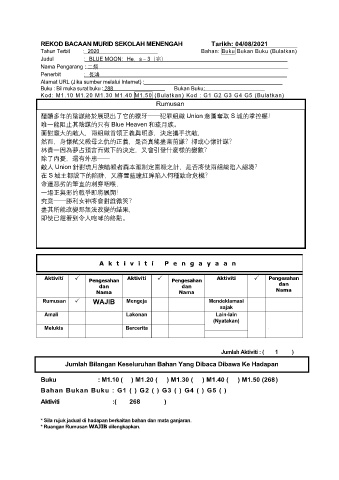 REKOD BACAAN MURID SEKOLAH MENENGAH Tarikh: 04/08/2021