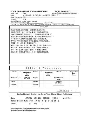 REKOD BACAAN MURID SEKOLAH MENENGAH Tarikh: 04/08/2021