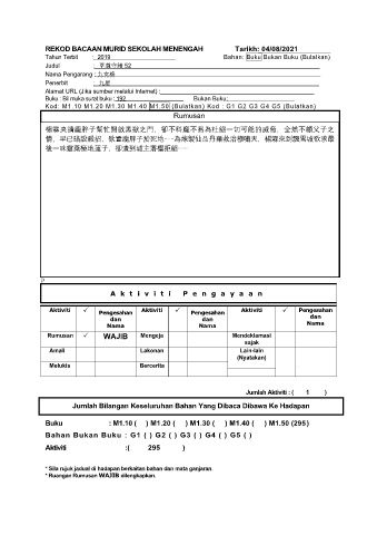REKOD BACAAN MURID SEKOLAH MENENGAH Tarikh: 04/08/2021