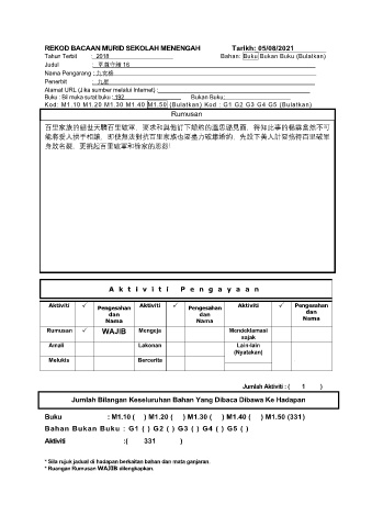 REKOD BACAAN MURID SEKOLAH MENENGAH Tarikh: 05/08/2021