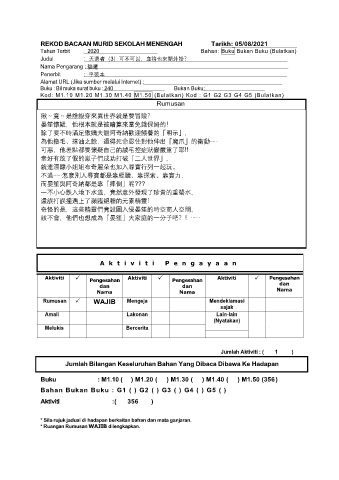REKOD BACAAN MURID SEKOLAH MENENGAH Tarikh: 05/08/2021