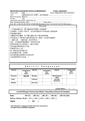 REKOD BACAAN MURID SEKOLAH MENENGAH Tarikh: 05/08/2021