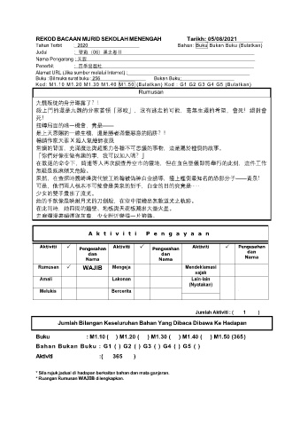 REKOD BACAAN MURID SEKOLAH MENENGAH Tarikh: 05/08/2021