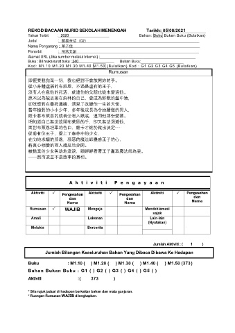 REKOD BACAAN MURID SEKOLAH MENENGAH Tarikh: 05/08/2021