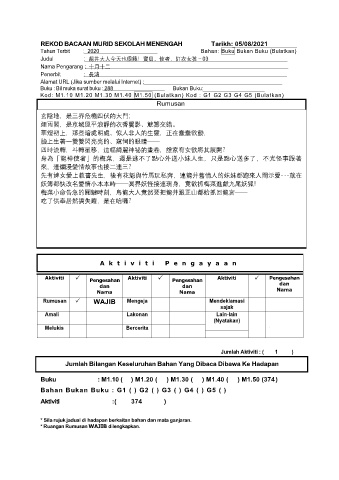 REKOD BACAAN MURID SEKOLAH MENENGAH Tarikh: 05/08/2021