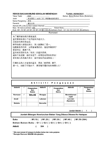 REKOD BACAAN MURID SEKOLAH MENENGAH Tarikh: 06/08/2021
