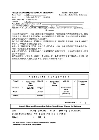 REKOD BACAAN MURID SEKOLAH MENENGAH Tarikh: 06/08/2021