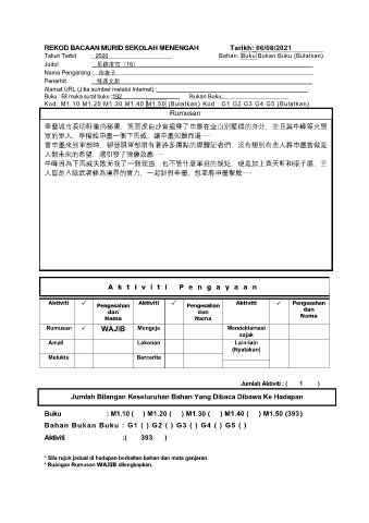 REKOD BACAAN MURID SEKOLAH MENENGAH Tarikh: 06/08/2021