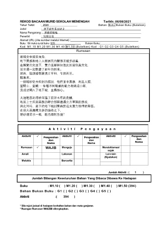 REKOD BACAAN MURID SEKOLAH MENENGAH Tarikh: 06/08/2021