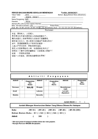 REKOD BACAAN MURID SEKOLAH MENENGAH Tarikh: 06/08/2021