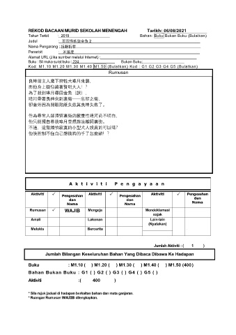 REKOD BACAAN MURID SEKOLAH MENENGAH Tarikh: 06/08/2021