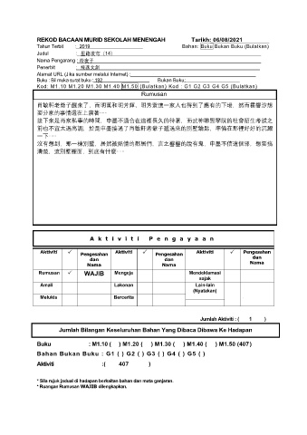 REKOD BACAAN MURID SEKOLAH MENENGAH Tarikh: 06/08/2021