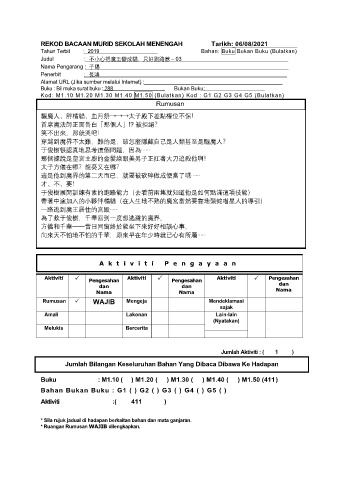 REKOD BACAAN MURID SEKOLAH MENENGAH Tarikh: 06/08/2021