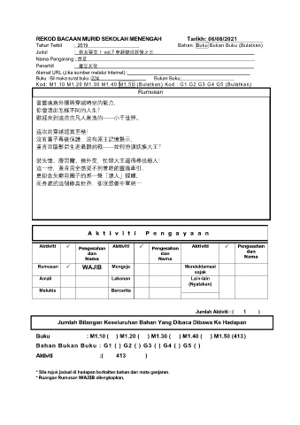REKOD BACAAN MURID SEKOLAH MENENGAH Tarikh: 06/08/2021