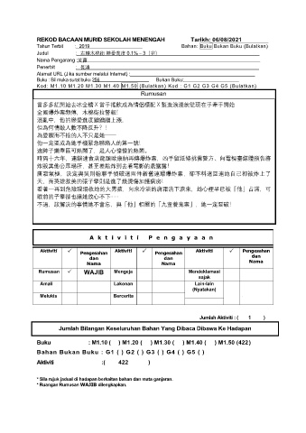 REKOD BACAAN MURID SEKOLAH MENENGAH Tarikh: 06/08/2021